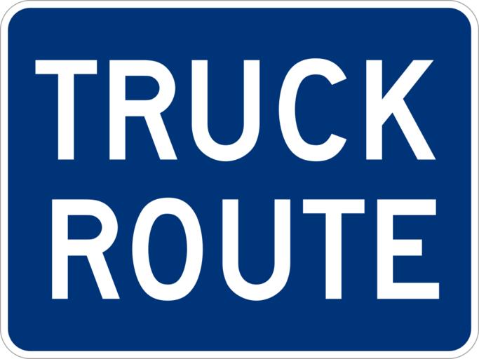 | Keywords: Truck Route plate blue.svg 600 mm by 450 mm 24 in by 18 in truck route plate made roughly to the specifications of the http //mutcd fhwa dot gov/SHSm/Guide pdf 2004 edition of Standard Highway Signs Uses the http //www triskele com/fonts/index html Roadgeek 2005 fonts United States law does not permit the copyrighting of typeface designs and the fonts are meant to be copies of a U S Government-produced work anyway The outside border has a width of 1 1 mm and a color of black so it shows up; in reality signs have no outside border Own 2016-04-17 Fredddie Auxiliary Plates Truck route blue |