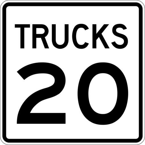 | Keywords: Trucks Speed 20 sign.svg 600 mm by 600 mm 24 in by 24 in Truck Speed Limit sign made to the specifications of the http //mutcd fhwa dot gov/SHSm/regulatory pdf 2004 edition of Standard Highway Signs sign R2-2 Uses the http //www triskele com/fonts/index html Roadgeek 2005 fonts United States law does not permit the copyrighting of typeface designs and the fonts are meant to be copies of a U S Government-produced work anyway The outside border has a width of 1 1 mm and a color of black so it shows up; in reality signs have no outside border own Ltljltlj User Ltljltlj/Template trucks 20 number R2-2 - Truck Speed Limit |