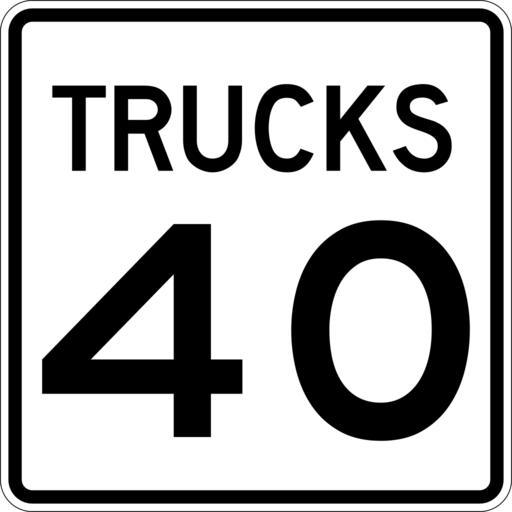 | Keywords: Trucks Speed 40 sign.svg 600 mm by 600 mm 24 in by 24 in Truck Speed Limit sign made to the specifications of the http //mutcd fhwa dot gov/SHSm/regulatory pdf 2004 edition of Standard Highway Signs sign R2-2 Uses the http //www triskele com/fonts/index html Roadgeek 2005 fonts United States law does not permit the copyrighting of typeface designs and the fonts are meant to be copies of a U S Government-produced work anyway The outside border has a width of 1 1 mm and a color of black so it shows up; in reality signs have no outside border own Ltljltlj User Ltljltlj/Template trucks 40 number R2-2 - Truck Speed Limit |