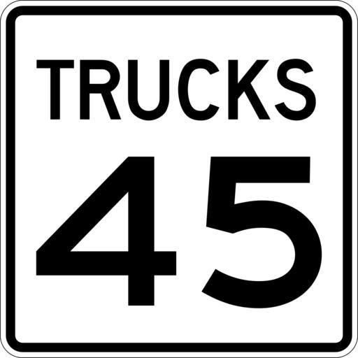 | Keywords: Trucks Speed 45 sign.svg 600 mm by 600 mm 24 in by 24 in Truck Speed Limit sign made to the specifications of the http //mutcd fhwa dot gov/SHSm/regulatory pdf 2004 edition of Standard Highway Signs sign R2-2 Uses the http //www triskele com/fonts/index html Roadgeek 2005 fonts United States law does not permit the copyrighting of typeface designs and the fonts are meant to be copies of a U S Government-produced work anyway The outside border has a width of 1 1 mm and a color of black so it shows up; in reality signs have no outside border own Ltljltlj User Ltljltlj/Template trucks 45 number R2-2 - Truck Speed Limit |