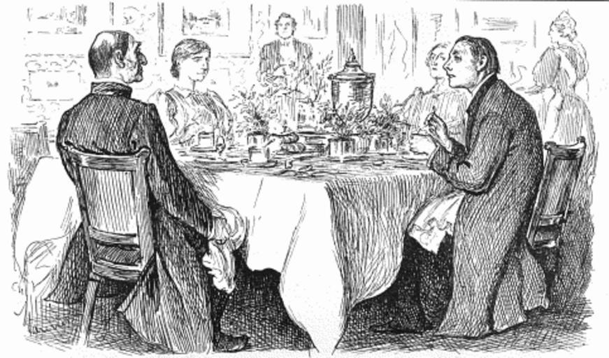 Keywords: True humility.png Caricature de George du Maurier pour le magazine satirique anglais Punch True Humility cartoon by George du Maurier from Punch November 9 1895 Scanned by Malcolm Farmer from the 1895 bound volume of Punch on 31 Aug 2004 Origin of phrase Curate's egg The bishop says I'm afraid you've got a bad egg Mr Jones Apparently trying to avoid offence or curry favor the curate replies Oh no my Lord I assure you that parts of it are excellent taken from en wikipedia org PD-art George du Maurier Dining rooms in art 1895 cartoons Humility Punch magazine cartoons 9 November 1895 Eggs in art Bishops in art Artworks missing infobox template |