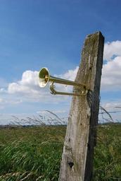 Keywords: trumpet cavalry trumpet copper musical instrument meadows post field humorous