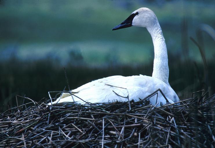 Keywords: trumpeter swan nesting bird nest waiting white wildlife waterfowl
