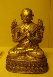 Keywords: Tsongkhapa, Tibet, 1368-1644 AD, gilt copper - Sichuan Provincial Museum - Chengdu, China - DSC04325.jpg en Exhibit in the Sichuan Provincial Museum 四 博物院 also known as the Sichuan Museum 251 Huanhua S Road Chengdu Sichuan China Photography was permitted in the museum without restriction This work is old enough so that it is in the public domain 2015-09-24 02 11 35 own Daderot other versions PD-old-100 cc-zero Tibetan sculptures in the Sichuan Provincial Museum Tsong-Kha-Pa |