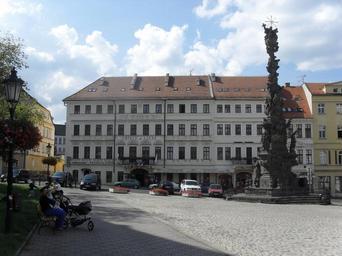 Keywords: (TTO) Hotel Prince de Ligne (Teplice) 16.JPG cs TTO Hotel Prince de Ligne - Teplice Zámecké náměstí 136 own Qwertz0451 2013-09 Cc-zero Holy Trinity column in Teplice Prince de Ligne