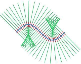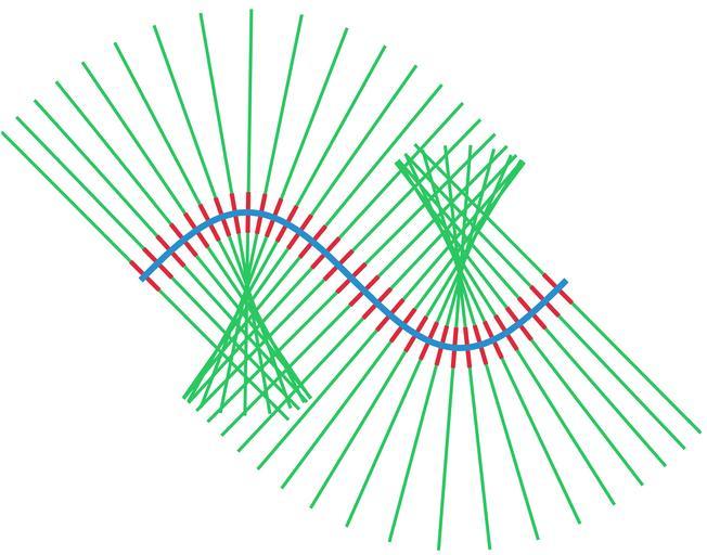 Keywords: Tubular neighborhood.png Illustration of en Tubular neighborhood Made with en Matlab Oleg Alexandrov 03 01 1 June 2007 UTC Public domain Created with MATLAB Source code MATLAB <source lang matlab > illustration of tubular neighborhood function main f inline 'sin x ' 'x' ; will construct a tubular neighborhood of this curve a 0; b 2 pi; N 100; X linspace a b N ; consider N points in the interval a b Y f X ; the curve ll 3; length of lines perpendicular to the curve lls 0 3; smaller subsegments thin_line 2; thick_line 4; will draw lines perpendicular to the graph of Y f X at points separted by length of 'spacing' spacing 0 033; M floor spacing N ; colors red 0 867 0 06 0 14; blue 0 129 205/256; green 0 200 70/256; figure 1 ; clf; hold on; axis equal; axis off; plot the lines for k 1 N p k-1 M+2; if p > N break; end the normal to the curve at X p Y p Normal - Y p+1 -Y p-1 X p+1 -X p-1 ; Normal Normal/norm Normal ; plot X p -ll Normal 1 X p +ll Normal 1 Y p -ll Normal 2 Y p +ll Normal 2 'color' green 'linewidth' thin_line plot X p -lls Normal 1 X p +lls Normal 1 Y p -lls Normal 2 Y p +lls Normal 2 'color' red 'linewidth' 0 7 thick_line end plot the curve plot X Y 'linewidth' thick_line ; saveas gcf 'Tubular_neighborhood eps' 'psc2' </source> Images with Matlab source code tubular neighborhood Files by User Oleg Alexandrov from en wikipedia math
