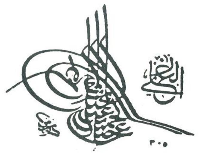 | Keywords: Tughra of Abdülhamid II.JPG Tughra of Abdülhamid II svg Tughra i e seal or signature of Abdülhamid II Sultan of the Ottoman Empire 1876-1909 An explanation of the different elements composing the tughra can be found http //www tugra org/okunus/pages/34 htm here Egypt State Information Service http //www sis gov eg/PDF/Ar/History/0809000000000000210002 pdf The original PDF document from which this tughra was cropped is also hosted on Commons File Tughras pdf Calligrapher Sami Efendi http //www tugra org/en/muhtesem asp Published and used between 1876 and 1909 on all Ottoman official documents and coins PD-Ottoman There are three other versions of Abdülhamid II's tughra that are currently hosted on Commons in different formats GIF PNG SVG However all of them are inaccurate since they do not depict the decorative motif in the lower left part of the tughra File Abdul Hameed II Sign gif black and white File Abdul Hameed II Sign svg vector graphics File Abdulhamid-II-tugra png orange with erroneous motif in the right part that reads Reshad instead of El Gazi Tughra of Abdül Hamid II Tughras from Egypt State Information Service Files uploaded by BomBom Sami Efendi |