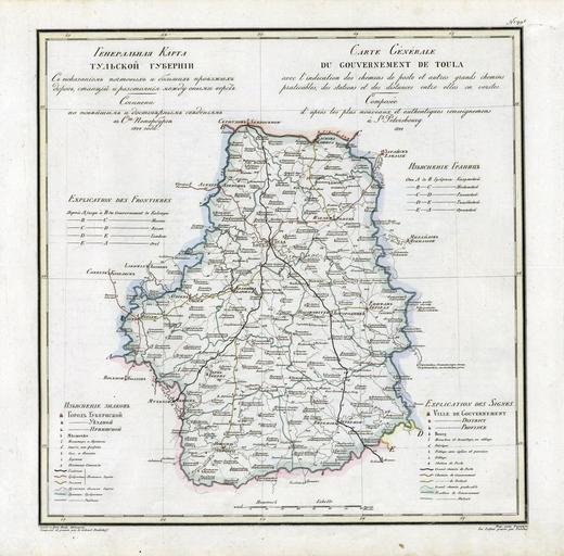 | Keywords: Tula governorate 1822.jpg  Тульская Губе ния Tula governorate Геог афический атлас Российской импе ии Ца ства Польского и Великого Княжества Финлянского  асположенный по губе ниям на двух языках с означением в онных го одах местечек сель де евень и всех п имичательнийших мест почтовых и больших п оезжих до ог станций и  асстояния между оными и п очими селениями в ве стах и милях на 70 листах с Гене альною ка тою и Таблицей  асстояния ве ст по почтовым до огам между знатнийшими го одами Сочинен по новейшим и достове ным сведениям в пользу обучающихся Российской Геог афии и для составления до ожников путешественникам служащих Военно-топог афического дела Его Импе ато ского Величества по ква ти мейсте ской части подполковником Пядышевым 1822 Пядышев Василий Пет ович PD-old Geographic Atlas of the Russian Empire Kingdom of Poland and Grand Duchy of Finland 1820-1827 Maps of the history of Russia in Russian Maps uploaded by ShinePhantom from various sources 1822 maps of Russia Maps of Tula Governorate |