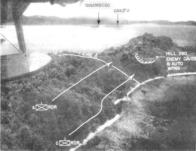 | Keywords: TulagiBattle1942.gif U S ADVANCE ALONG TULAGI was executed during the morning of 7 August by Col Edson's 1st Raider Battalion as shown in this overprinted photograph Phase Line A was in Marine hands by 1120 http //www ibiblio org/hyperwar/USMC/USMC-M-Guadalcanal/USMC-M-Guadalcanal-2 html PD-USGov Battle of Tulagi and Gavutu-Tanambogo |