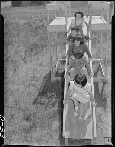 | Keywords: Tule Lake Relocation Center, Newell, California. Five little nursery school children try out the sl . . . - NARA - 538232.tif Scope and content The full caption for this photograph reads Tule Lake Relocation Center Newell California Five little nursery school children try out the slide in the playground at this War Relocation Authority Center All playground equipment was built from scrap lumber by evacuee-craftsmen General notes 538232 Local identifier 210-G-D33 Department of the Interior War Relocation Authority 02/16/1944 - 06/30/1946 NARA-Author Stewart Francis War Relocation Authority photographer Photographer 8464475 <br /> Still Picture Records Section Special Media Archives Services Division NWCS-S National Archives at College Park 8601 Adelphi Road College Park MD 20740-6001 1942-07-01 Record group Record Group 210 Records of the War Relocation Authority 1941 - 1989 Record group ARC 537 Central Photographic File of the War Relocation Authority compiled 1942 - 1945 Series ARC 536000 File unit File unit ARC Variant control numbers NAIL Control Number NWDNS-210-G-D33 yes Other versions <gallery> File Tule_Lake_Relocation_Center _Newell _California _Five_little_nursery_school_children_try_out_the_sl_ _ _ _-_NARA_-_538232 tif tif File Tule_Lake_Relocation_Center _Newell _California _Five_little_nursery_school_children_try_out_the_sl_ _ _ _-_NARA_-_538232 jpg jpg </gallery> NARA-cooperation PD-USGov Tule Lake War Relocation Center NARA TIF images with categorized JPGs |