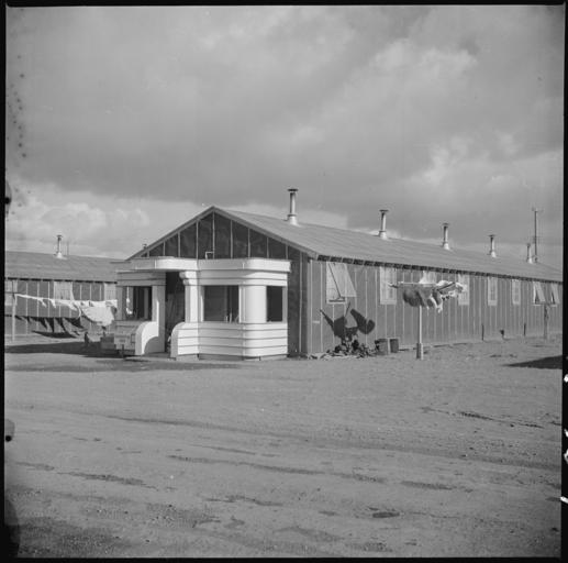 | Keywords: Tule Lake Relocation Center, Newell, California. A view showing the artistic way in which the evacu . . . - NARA - 536360.jpg Scope and content The full caption for this photograph reads Tule Lake Relocation Center Newell California A view showing the artistic way in which the evacuees decorate the exterior of the barracks to make them more homelike General notes New facade for barracks building in the Tule Lake War Segregation Center a 1942-1946 concentration camp for Japanese American internees in California 536360 Local identifier 210-G-A459 Department of the Interior War Relocation Authority 02/16/1944 - 06/30/1946 NARA-Author Stewart Francis War Relocation Authority photographer Photographer 8464475 <br /> Still Picture Records Section Special Media Archives Services Division NWCS-S National Archives at College Park 8601 Adelphi Road College Park MD 20740-6001 1942-11-03 Record group Record Group 210 Records of the War Relocation Authority 1941 - 1989 Record group ARC 537 Central Photographic File of the War Relocation Authority compiled 1942 - 1945 Series ARC 536000 File unit File unit ARC Variant control numbers NAIL Control Number NWDNS-210-G-A459 Other versions <gallery> File Tule_Lake_Relocation_Center _Newell _California _A_view_showing_the_artistic_way_in_which_the_evacu_ _ _ _-_NARA_-_536360 tif tif File Tule_Lake_Relocation_Center _Newell _California _A_view_showing_the_artistic_way_in_which_the_evacu_ _ _ _-_NARA_-_536360 jpg jpg </gallery> NARA-cooperation PD-USGov Buildings in Tule Lake War Segregation Center Barracks Facades in California Entrances in the United States Residential buildings in California 1942 in California T NARA images of Modoc County California Black and white photographs of California Tule1942 Black and white photographs of residential buildings California |