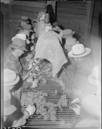 | Keywords: Tule Lake Relocation Center, Newell, California. Evacuee-farmers sorting seed potatoes in the seed . . . - NARA - 538220.jpg  Scope and content The full caption for this photograph reads Tule Lake Relocation Center Newell California Evacuee-farmers sorting seed potatoes in the seed stroage warehouse at this War Relocation Authority center General notes 538220 Local identifier 210-G-D21 Department of the Interior War Relocation Authority 02/16/1944 - 06/30/1946 NARA-Author Stewart Francis War Relocation Authority photographer Photographer 8464475 <br /> Still Picture Records Section Special Media Archives Services Division NWCS-S National Archives at College Park 8601 Adelphi Road College Park MD 20740-6001 1942-07-01 Record group Record Group 210 Records of the War Relocation Authority 1941 - 1989 Record group ARC 537 Central Photographic File of the War Relocation Authority compiled 1942 - 1945 Series ARC 536000 File unit File unit ARC Variant control numbers NAIL Control Number NWDNS-210-G-D21 Other versions <gallery> File Tule_Lake_Relocation_Center _Newell _California _Evacuee-farmers_sorting_seed_potatoes_in_the_seed_ _ _ _-_NARA_-_538220 tif tif File Tule_Lake_Relocation_Center _Newell _California _Evacuee-farmers_sorting_seed_potatoes_in_the_seed_ _ _ _-_NARA_-_538220 jpg jpg </gallery> NARA-cooperation PD-USGov Tule Lake War Relocation Center |