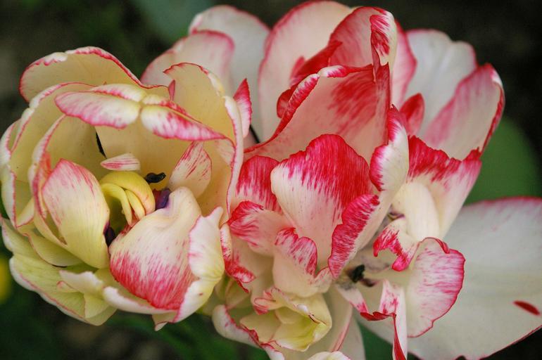 Keywords: tulip blossom bloom flower close zwiebelpflanze garden spring nature flora gardening white red double flower petals unusual white