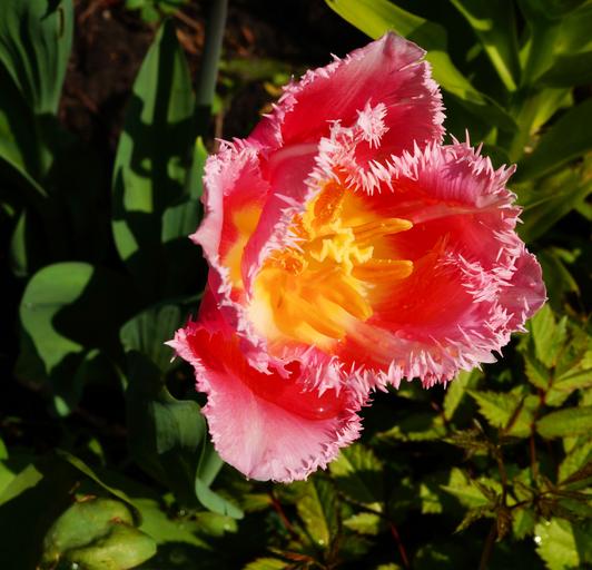 Keywords: tulip flower blossom bloom holland jagged edge red pink flowers