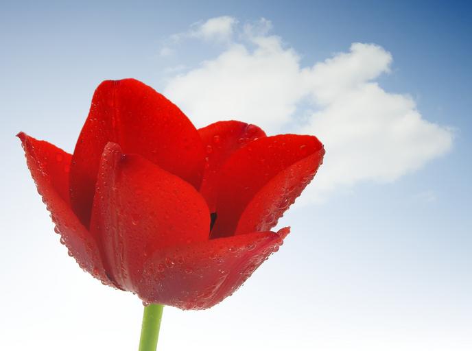 Keywords: tulip flower nature spring blossom bloom plant flora red sky clouds