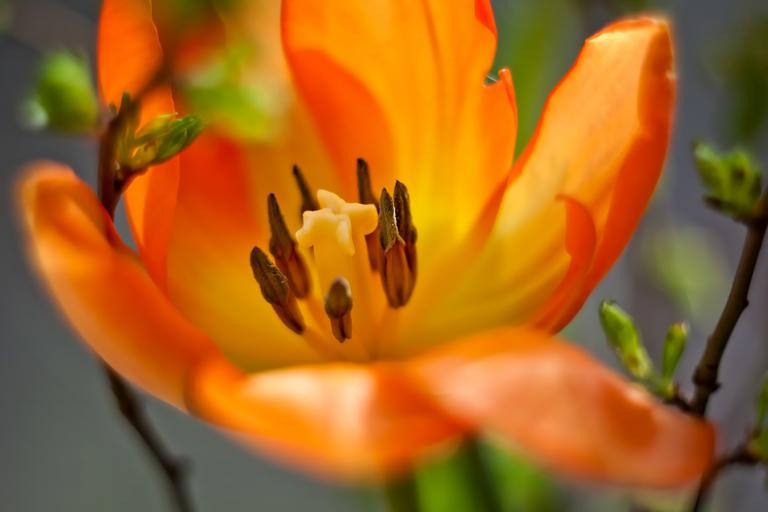 Keywords: tulip macro orange blossom bloom nature plant flower spring lily schnittblume flora flower bracts yellow blossomed close pastellfarben green colorful pistil holland