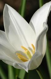 Keywords: tulip white easter petal pistil stamen style stigma spring sunshine nature close-up leaf stem
