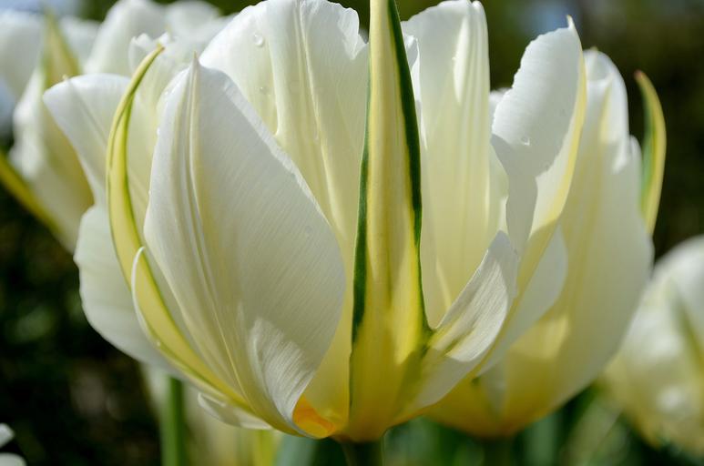 Keywords: tulip white green yellow blossom bloom flower spring white petals tulpenbluete bloom noble tulip