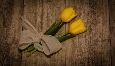 Keywords: tulips cut flowers yellow spring flowers yellow flowers loop mesh wood vintage