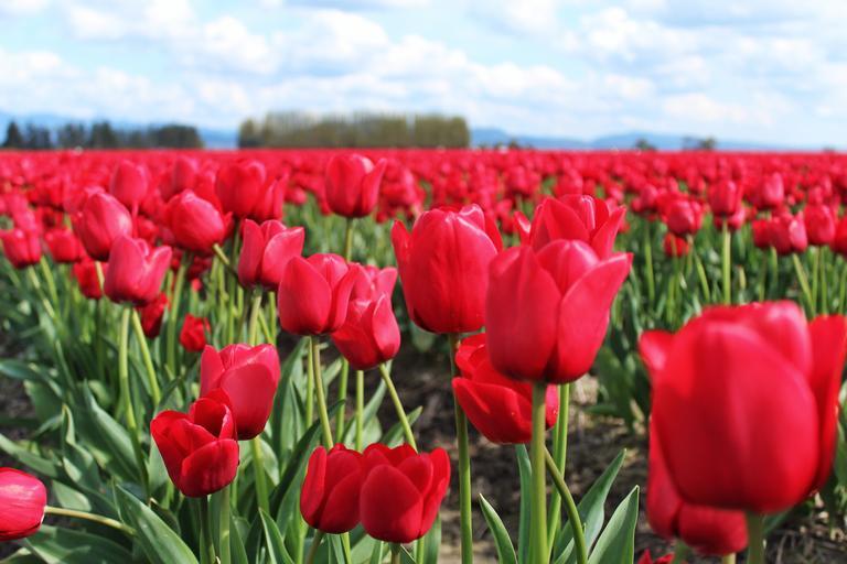 Keywords: tulips flowers field sky outdoors spring red plant blooming natural bloom blossom day