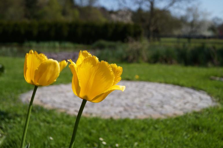 Keywords: tulips flowers yellow summer nature yellow flower blossom bloom plant bright