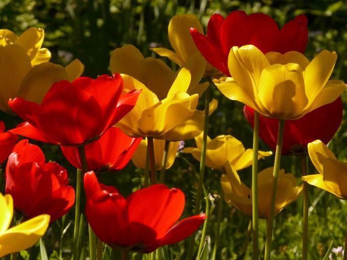 Keywords: tulips red yellow back light beautiful tulpenbluete flowers colorful color spring bloom tulipa ornamental plant garden park blossom bloom garden cups nature blossom blossomed floral colourful flora flower fresh plant glück happiness idyllic landscape sunlight sunny day day tulip outdoor floristry