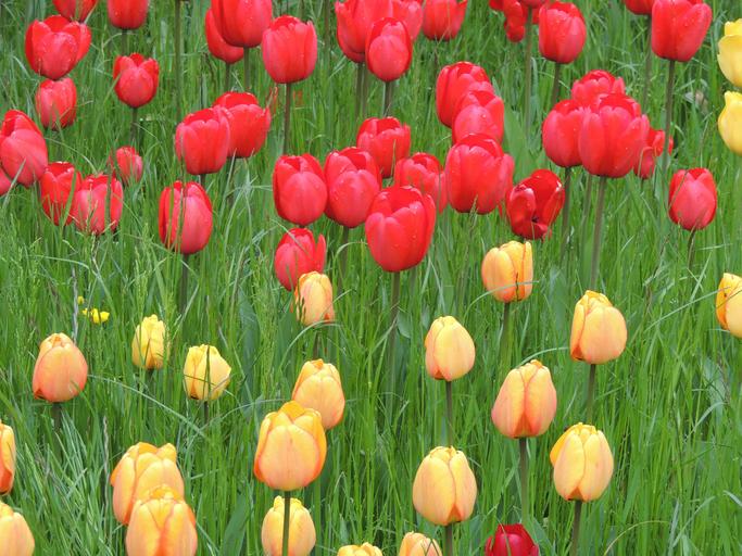 Keywords: tulips red yellow meadow green grass nature landscape plant