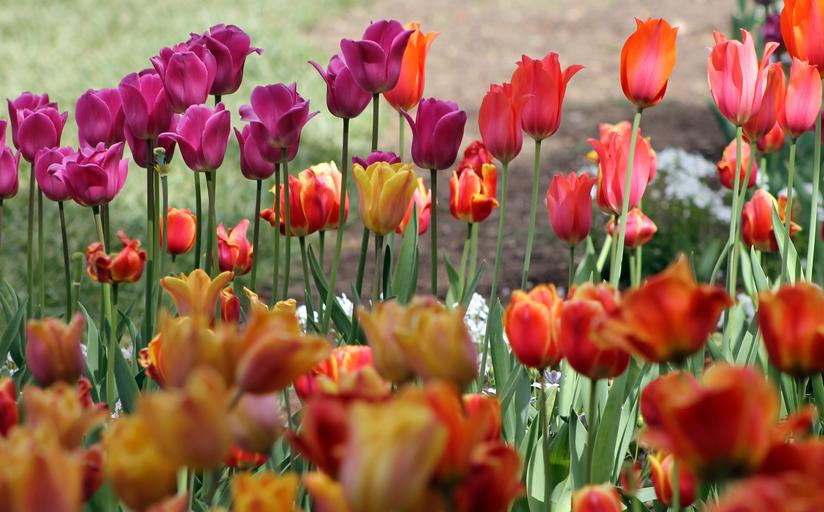 Keywords: tulips spring floral garden blossom fresh red purple yellow mixed