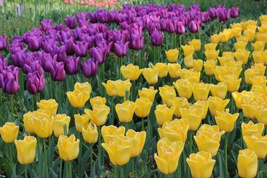 Keywords: tulips spring flowers nature yellow purple tulip bloom park holland