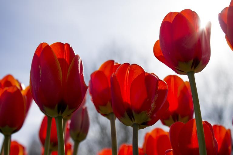 Keywords: tulips spring netherlands tulip fields flower flowers red color plants summer nature garden orange yellow bloom plant sun blossom blue sky blue