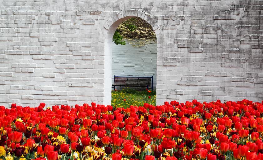 Keywords: tulips spring red bloom blossom bloom flower door wall opening
