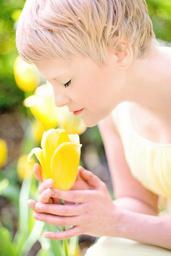 Keywords: tulips yellow blonde pretty young woman spring flower fresh