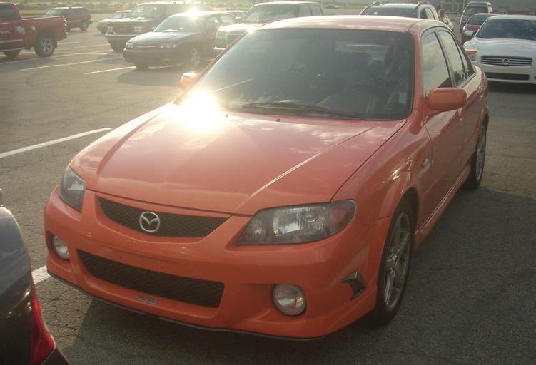 Keywords: Tuned '03 Mazda Protegé (Les chauds vendredis '10).jpg 2003 Mazda Protegé photographed in Laval Quebec Canada at Les chauds vendredis 2010 Own 07/16/10 Bull-Doser All Rights Released Orange sedans Mazda_Protegé BJ Les chauds vendredis 2010