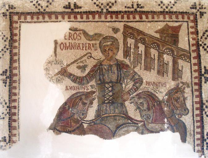 Keywords: Tunis Bardo Mosaique 11.jpg Mosaique de l'aurige vainqueur IVe siècle provenant de Dougga au Musée national du Bardo Tunis own M Rais 2010 Ancient Roman mosaics in the Bardo National Museum Tunis Auriga Ancient Roman art from Dougga Ancient Roman inscriptions in the Bardo National Museum Tunis Auriga 4th-century mosaics Ancient Roman circuses |