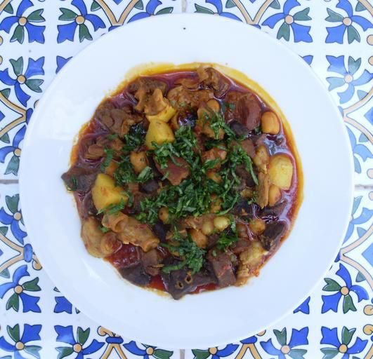 Keywords: Tunis Glaïa Djerba.JPG fr Plat Djerbien à base d'abats préparé à l'occasion de l'Aïd own Rais67 2009 Plates with food in Tunisia