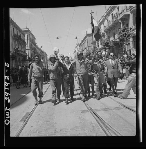 Keywords: Tunis, Tunisia. Allied troops entering Tunis8d29797r.jpg en Tunis Tunisia Allied troops entering Tunis 1943 Library of Congress U S Government other versions PD-USGov Uploaded with UploadWizard Allied Victory Parade in Tunis People with flags of France |