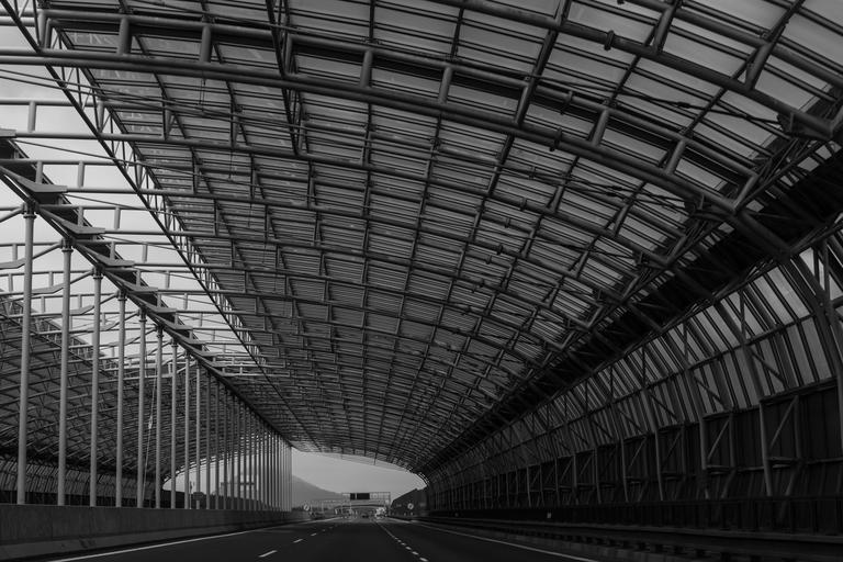 Keywords: tunnel highway czech republic black and white drive move steel construction