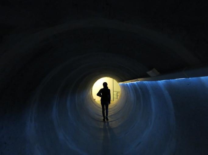 Keywords: tunnel woman light mountain factory cave input silhuette gang
