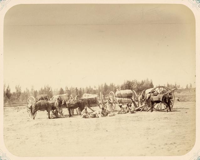 Keywords: Turkestan Krai. Night Lodging Site for Caravans WDL11116.png Artwork ru Кун Александ Людвигович 1840 1888 гг fr Kun Aleksandr L 1840-1888 en Kun Aleksandr L 1840-1888 zh 亚历山大·L· ,1840-1888 年 pt Kun Aleksandr L 1840-1888 ar كُن، ألكسندر ل ، 1840-1888 es Kun Aleksandr L 1840-1888 ru Ту кестанский к ай очная стоянка ка аванов fr Kraï du Turkestan Site de halte nocturne pour les caravanes en Turkestan Krai Night Lodging Site for Caravans zh 其斯 边疆 区:商队的 宿点 pt Krai do Turquestão Local de alojamento noturno das caravanas ar منطقة تُرْكِستان موقع البيات الليلي للقوافل ru Эта фотог афия входит в этног афическую часть <em> Ту кестанского альбома </em><em></em>  всесто оннего исследования Цент альной Азии п едп инятого после того как в 1860-х годах в егионе установилось господство Российской импе ии Альбом созданный по аспо яжению гене ала Константина Пет овича фон Кауфмана 1818 1882 годы пе вого гене ал-губе нато а оссийского Ту кестана состоит из четы ех частей в шести томах «Часть а хеологическая» два тома «Часть этног афическая» два тома «Часть п омысловая» один том и «Часть исто ическая» один том Основным составителем альбома был оссийский востоковед Александ Людвигович Кун аботавший совместно с иколаем Венедиктовичем Богаевским В альбоме п едставлено около 1200 фотог афий а также а хитекту ные планы аква ельные исунки и ка ты «Часть этног афическая» включает в себя 491отдельную  фотог афию на 163 листах а фотог афиях изоб ажены п едставители азличных на одов егиона листы 1 33 повседневная жизнь и итуалы листы 34 91 а также виды де евень и го одов уличные то говцы и комме ческая деятельность листы 92 163 <br>Ка аваны; Коляски и тележки; Этног афические фотог афии; Фотог афические исследования; Тю кские на оды fr Cette photographie est extraite de la partie ethnographique de l'<em>Album du Turkestan</em> étude visuelle complète de l'Asie centrale entreprise après que l'Empire russe prit le contrôle de la région dans les années 1860 Commandé par le général Konstantin Petrovich von Kaufman 1818 1882 premier gouverneur général du Turkestan russe l'album est composé de six volumes en quatre parties  la partie archéologique deux volumes la partie ethnologique deux volumes la partie sur les métiers un volume et la partie historique un volume L'album fut essentiellement compilé par l'orientaliste russe Aleksandr L  Kun assisté de Nikolai V  Bogaevskii Il comporte près de 1200 photographies et inclut également des plans architecturaux des dessins à l'aquarelle et des cartes La partie ethnographique compte 491 photographies sur 163 planches montrant des individus des différentes peuplades de la région planches 1 à 33 des scènes de la vie quotidienne et des rites planches 34 à 91 ainsi que des vues de villages et de villes de vendeurs ambulants et d'activités commerciales planches 92 à 163 <br>Caravanes; Chariots et charrettes; Photographies ethnographiques; Inventaires photographiques; Peuples turciques en This photograph is from the ethnographical part of <em>Turkestan Album</em><em> </em>a comprehensive visual survey of Central Asia undertaken after imperial Russia assumed control of the region in the 1860s Commissioned by General Konstantin Petrovich von Kaufman 1818 82 the first governor-general of Russian Turkestan the album is in four parts spanning six volumes Archaeological Part two volumes ; Ethnographic Part two volumes ; Trades Part one volume ; and Historical Part one volume The principal compiler was Russian Orientalist Aleksandr L Kun who was assisted by Nikolai V Bogaevskii The album contains some 1 200 photographs along with architectural plans watercolor drawings and maps The Ethnographic Part includes 491 individual photographs on 163 plates The photographs show individuals representing the different peoples of the region Plates 1 33 ; daily life and rituals Plates 34 91 ; and views of villages and cities street vendors and commercial activities Plates 92 163 <br>Caravans; Carriages and carts; Ethnographic photographs; Photographic surveys; Turkic peoples zh 这张照片出自<em> 其斯 相册 </em><em> </em>的民族部分,该相册是俄罗斯 国 19 世纪 60 年代取得中亚控制 后, 手制 的 部针对该 区的综合 图像调查记录 相册由俄罗斯驻 其斯 (俄罗斯 国中亚属 的名称)首任 康斯 丁·彼得罗维奇·凡· 夫曼(Konstantin Petrovich von Kaufman,1818 82 年)将军赞助完成,共分六卷,四个部分: 古部分 (两卷); 民族部分 (两卷); 贸易部分 ( 卷)和 历史部分 ( 卷) 相册的主要编纂人是俄罗斯 方学 亚历山大·L· Aleksandr L Kun 亚历山大是 尼可莱·V·柏盖维斯基 Nikolai V Bogaevskii 的协助下完成相册的编纂 相册共含 1200 张照片,另 建筑平 图 水彩画和 图 民族部分 包括 491 张个人照,占 163 页 照片展现了该 区各个民族的人物形象(1-33 页) 日常生活和礼