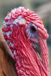 Keywords: turkey bird domestic poultry animal head face close-up macro details ugly red profile photo image nature