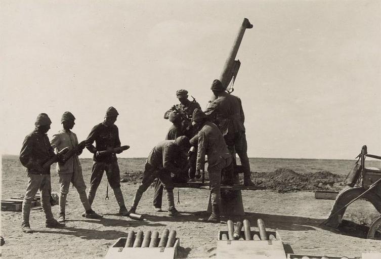 | Keywords: Turkish anti-aircraft.jpg en Anti-aircraft guns at Tell el Sheria 1917 Library of congress link http //memory loc gov/phpdata/pageturner php type contactminor cmIMG1 /pnp/ppmsca/13700/13709/00123t gif agg ppmsca item 13709 caption 122 American Colony Photographic department 1917 PD-Matson Matson Collection Sinai and Palestine Campaign Canon de 75 modèle 1897 AA gun Anti-aircraft artillery of the Ottoman Empire World War I artillery of the Ottoman Empire 1917 in aviation | ||||