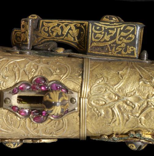 Keywords: Turkish - Rifle - Walters 5184 - Mark A.jpg Referencing the elite pastimes of hunting and writing this ceremonial jeweled rifle set includes a dagger pen case penholder with pen penknife cleaner and a spoon-all conveniently housed within the rifle butt Penknives were important elements in the calligrapher's toolset and their handles were often elaborately decorated The hardness of the reed used for pens throughout Islamic lands required a good blade to make a clean cut The small spoon was used to put black powder into the flash pan in preparation for firing the rifle The imperial monogram tughra of the Ottoman ruler Sultan Mahmud I r 1730-54 is inscribed in diamonds inside the hinged panel of the rifle butt The artist Muhammad and the rifle's owner Ahmad Khan who had possession of the rifle at some point are also named 1732-33 Early Modern rifle steel wood gold gilded silver gilded brass silver nephrite diamonds emeralds rubies or spinels ; dagger steel inlaid with gold rubies and beryls cm 24 8 139 7 7 accession number 51 84 22655 R S Pardo Constantinople date and mode of acquisition unknown Henry Walters Baltimore 1903 mode of acquisition unknown Walters Art Museum Henry Walters Acquired by Henry Walters 1903 Translation on barrel What God wills on flintlock Work of Muhammad; its owner is Ahmad Khan tughra hidden under panel in stock is that of Sultan Mahmud I r 1730-1754 place of origin Turkey Walters Art Museum license Islamic metalwork in the Walters Art Museum Weapons in the Walters Art Museum Firearms of the Ottoman Empire Art from Turkey Media contributed by the Walters Art Museum needs category review |