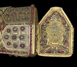 Keywords: Turkish - Rifle - Walters 5184 - Detail F.jpg Referencing the elite pastimes of hunting and writing this ceremonial jeweled rifle set includes a dagger pen case penholder with pen penknife cleaner and a spoon-all conveniently housed within the rifle butt Penknives were important elements in the calligrapher's toolset and their handles were often elaborately decorated The hardness of the reed used for pens throughout Islamic lands required a good blade to make a clean cut The small spoon was used to put black powder into the flash pan in preparation for firing the rifle The imperial monogram tughra of the Ottoman ruler Sultan Mahmud I r 1730-54 is inscribed in diamonds inside the hinged panel of the rifle butt The artist Muhammad and the rifle's owner Ahmad Khan who had possession of the rifle at some point are also named 1732-33 Early Modern rifle steel wood gold gilded silver gilded brass silver nephrite diamonds emeralds rubies or spinels ; dagger steel inlaid with gold rubies and beryls cm 24 8 139 7 7 accession number 51 84 22655 R S Pardo Constantinople date and mode of acquisition unknown Henry Walters Baltimore 1903 mode of acquisition unknown Walters Art Museum Henry Walters Acquired by Henry Walters 1903 Translation on barrel What God wills on flintlock Work of Muhammad; its owner is Ahmad Khan tughra hidden under panel in stock is that of Sultan Mahmud I r 1730-1754 place of origin Turkey Walters Art Museum license Islamic metalwork in the Walters Art Museum Weapons in the Walters Art Museum Firearms of the Ottoman Empire Art from Turkey Media contributed by the Walters Art Museum needs category review |