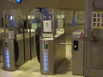 Keywords: Turnstile for disabled people and standard one.jpg en Turnstile for disabled people baby stroller or people with luggages With a standard turnstile on the right Station Haussmann Saint-Lazare fr Portillon du métro parisien pour personne handicapée poussette ou personne avec des bagages Avec sur la droite un portillon standard Station de métro Haussmann Saint-Lazare own Tangopaso 2010-01-04 48 52 31 18 N 2 19 41 44 E heading W Commons Tangopaso Ticket barriers in France Smart card machines in public transport Gare de Haussmann - Saint-Lazare Navigo pass SNCF ticket machines Accessibility |