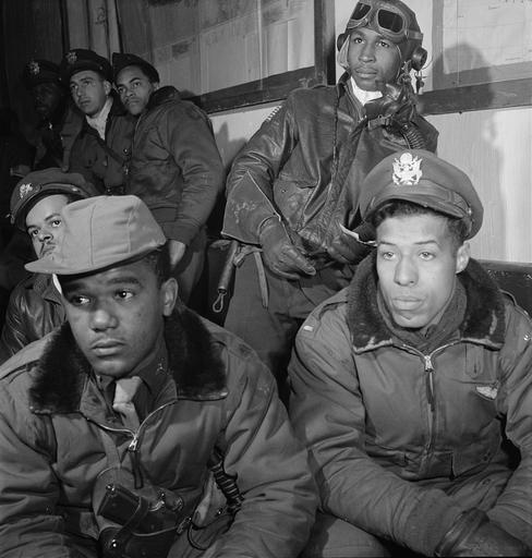 | Keywords: Tuskegee airmen attending a briefing in Ramitelli, Italy 13261v.jpg  Photograph en Photograph of Tuskegee airmen attending a briefing in Ramitelli Italy March 1945 en Photograph shows Tuskegee airmen attending a briefing Foreground left to right Joseph L Joe Chineworth partial view wheel cap Memphis TN Class 44-E; Emile G Clifton San Francisco CA Class 44-B; Richard S Rip Harder Brooklyn NY Class 44-B Along back wall back to front Frank N Wright Elmsford NY Class 44-F; Robert J Murdic Franklin TN Class 44-F; Jimmie D Wheeler At Ramitelli Italy March 1945 Source Tuskegee Airmen 332nd Fighter Group pilots accession number LC-DIG-ppmsca-13261 digital file from original neg Call Number LC-F9-02-4503-320-03 item P P LOT 12447-1 Corresponding print Repository Library of Congress Prints and Photographs Division Washington D C 20540 USA Also available as contact sheet in LOT 12447-1 Title devised by Library staff Forms part of Toni Frissell Collection Library of Congress LOC-image ppmsca 13261 Rights Advisory No known restrictions on publication <gallery> Tuskegee airmen attending a briefing tif tif </gallery> Toni Frissell http //www loc gov/rr/print/res/070_fris html 332d Fighter Group United States Army Air Forces World War II aircrew briefing Toni Frissell |