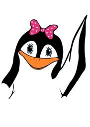 Keywords: tux animal bird bow cute girl penguin waving hello
