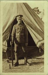 Keywords: first world war firstworldwar ww1 wor life worlife tent crease world war one worldwarone wartime black and white photograph blackandwhitephotograph digital image digitalimage archives military social history socialhistory postcard soldier standing full uniform fulluniform uniform gun hand regional faces of the first world war regionalfacesofthefirstworldwar wor faces: regional faces of the first world war worfacesregionalfacesofthefirstworldwar mysterious unusual fascinating interesting white outline whiteoutline grass daylight shadow tree rope darkness belt buckle pocket button weapon posing portrait tyne and wear tyneandwear north east of england northeastofengland united kingdom unitedkingdom attentive clean shaven cleanshaven peg army people black and white Postcard, black and white, of a soldier standing outside a tent dressed in full uniform and holding a gun in his right hand Regional Faces of the First World War. The photograph is from an album relating to the men, women and children from Tyne and Wear who lived, worked or fought during the First World War. Accompanying this photo is the biographical and supporting information that we have about them, but the full story is not always known. Our collections records are not very detailed in some cases. We need your help to fill in the blanks. Do you have any information to add to what is already here? A name? A location? What more can you find out and tell us about their life? If you have some extra information about this photograph, please add your comments, information and any links, images or text. Part of the ‘Wor Life’ project. To find out more please visit www.worlife.org.uk Postcard, black and white, of a soldier standing outside a tent dressed in full uniform and holding a gun in his right hand Regional Faces of the First World War. The photograph is from an album relating to the men, women and children from Tyne and Wear who lived, worked or fought during the First World War. Accompanying this photo is the biographical and supporting information that we have about them, but the full story is not always known. Our collections records are not very detailed in some cases. We need your help to fill in the blanks. Do you have any information to add to what is already here? A name? A location? What more can you find out and tell us about their life? If you have some extra information about this photograph, please add your comments, information and any links, images or text. Part of the ‘Wor Life’ project. To find out more please visit www.worlife.org.uk |