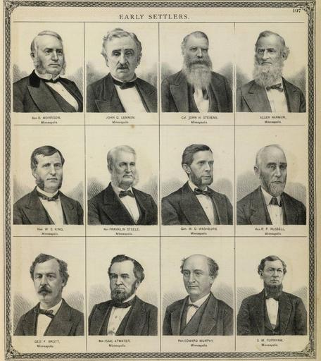 | Keywords: Twelve notable Minnesotans of the 19th century.jpg en Twelve lithograph portraits of notable 19th-century settlers of Minnesota D Morrison John G Lennon Col John H Stevens Allen Harmon W S King Franklin Steele Gen W D Washburn R P Russell Geo F Brott Isaac Atwater Edward Murphy and S W Furnham An illustrated historical atlas of the State of Minnesota http //www davidrumsey com/luna/servlet/detail/RUMSEY~8~1~22612~760011 -Portraits-of--Early-settlers--D--M http //www davidrumsey com/rumsey/Size4/D0076/00764011 jpg userid 15 username lunaadmin resolution 4 servertype JVA cid 8 iid RUMSEY vcid NA usergroup Rumsey3x profileid 13 Chas Shober Co printer and engraver 1874 PD-100 Original metadata from the David Rumsey Map Collection Author Andreas A T Alfred Theodore 1839-1900 Date 1874 Short Title Portraits of Early settlers D Morrison John G Lennon et al Publisher A T Andreas Chicago Obj Height cm 39 Obj Width cm 34 Note Twelve lithographed views Reference Checklist of printed maps of the Middle West to 1900 7-0857; P2007; LC United States atlases L1901; Ristow American maps and mapmakers p 433-437 Full Title Portraits of Early settlers D Morrison John G Lennon Col John H Stevens Allen Harmon W S King Franklin Steele Gen W D Washburn R P Russell Geo F Brott Isaac Atwater Edward Murphy S W Furnham Published by A T Andreas Lakeside Building Chicago 1874 Chas Shober Co Proprietors of Chicago Lith Co List No 3034 173 Page No 197 Series No 180 Engraver or Printer Chas Shober Co Publication Author Andreas A T Alfred Theodore 1839-1900 Pub Date 1874 Pub Title An illustrated historical atlas of the State of Minnesota Published by A T Andreas Lakeside Building Chicago Ills 1874 Chas Shober Co Proprietors of Chicago Lith Co Pub Reference P2007; Checklist of printed maps of the Middle West to 1900 7-0857; LC United States atlases L1901; Ristow American maps and mapmakers p 433-437 Pub Note Special ed with three city views added as issued This deluxe ed added views of Minneapolis St Paul and Winona It is bound in embossed red cloth covers green for the regular ed with marbled end papers The regular ed was a much larger press run and was distributed to all the schools in the state This special ed is rare especially with the views still present This copy is from the collection of the former Governor of Minnesota Elmer Andersen Hand painted and printed in full color Front and back covers stamped with Illustrated historical atlas of the State of Minnesota 1874 in gilt Pub List No 3034 000 Pub Type State Atlas Pub Maps 76 Pub Height cm 46 Pub Width cm 38 Image No 3034173 People of Minnesota |