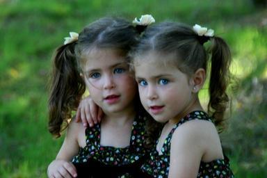 Keywords: twin sisters love girls blue eyes beauty innocence portrait double