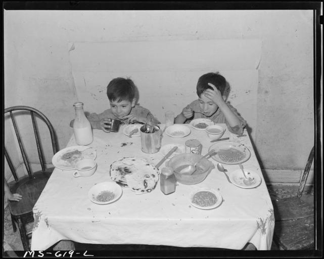 Keywords: Two children of Joe L. Montoya, miner, eating in kitchen of their home in company housing project. Royal Coal... - NARA - 540532.jpg Scope and content General notes 540532 Local identifier 245-MS-619L Department of the Interior Solid Fuels Administration For War 04/19/1943 - 06/30/1947 NARA-Author Lee Russell 1903-1986 Photographer 2489414 <br /> Still Picture Records Section Special Media Archives Services Division NWCS-S National Archives at College Park 8601 Adelphi Road College Park MD 20740-6001 1946-07-06 Record group Record Group 245 Records of the Solid Fuels Administration for War 1937 - 1948 Record group ARC 572 Photographs of the Medical Survey of the Bituminous Coal Industry compiled 1946 - 1947 Series ARC 540230 File unit File unit ARC Variant control numbers NAIL Control Number NWDNS-245-MS-619L Other versions <gallery> File Two_children_of_Joe_L _Montoya _miner _eating_in_kitchen_of_their_home_in_company_housing_project _Royal_Coal _-_NARA_-_540532 tif tif File Two_children_of_Joe_L _Montoya _miner _eating_in_kitchen_of_their_home_in_company_housing_project _Royal_Coal _-_NARA_-_540532 jpg jpg </gallery> NARA-cooperation PD-USGov Coal mining in the United States |